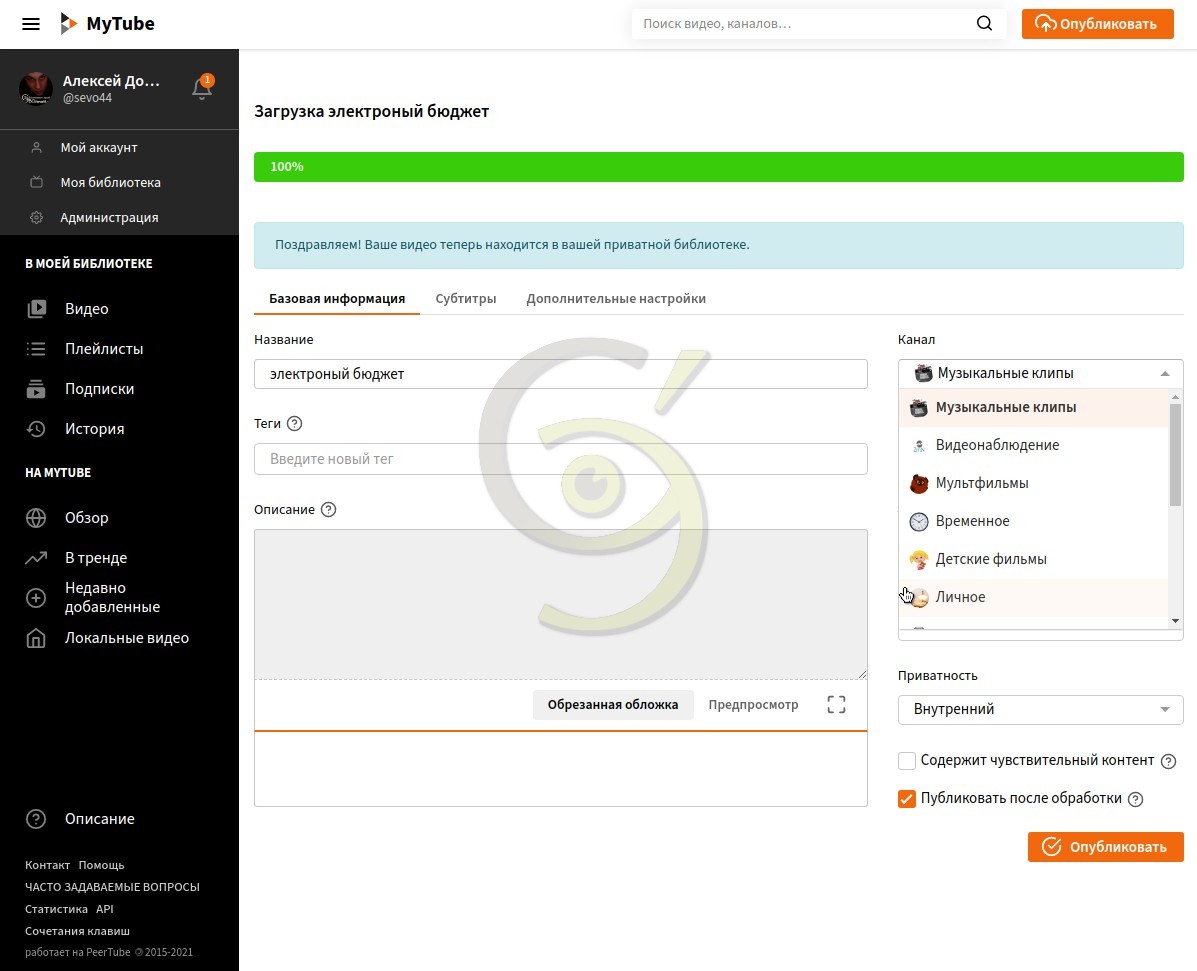 - После обработки видеофайл попадает в папку /var/www/peertube/storage/videos и имеет столько вариантов сколько вариантов разрешения вы выбрали;
